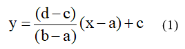 trong đó x là điểm trúng tuyển phương thức A, y là điểm trúng tuyển phương thức B; [a, b] là khoảng điểm của phương thức A tương đương với khoảng điểm [c, d] của phương thức B. Các hệ số a, b, c, d được xác định theo bách phân vị kết quả kỳ thi, bài thi/tổ hợp xét tuyển.